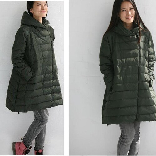 A Line Winter Puffer Coat Down Jacket Thick Women Hooded Down Etsy